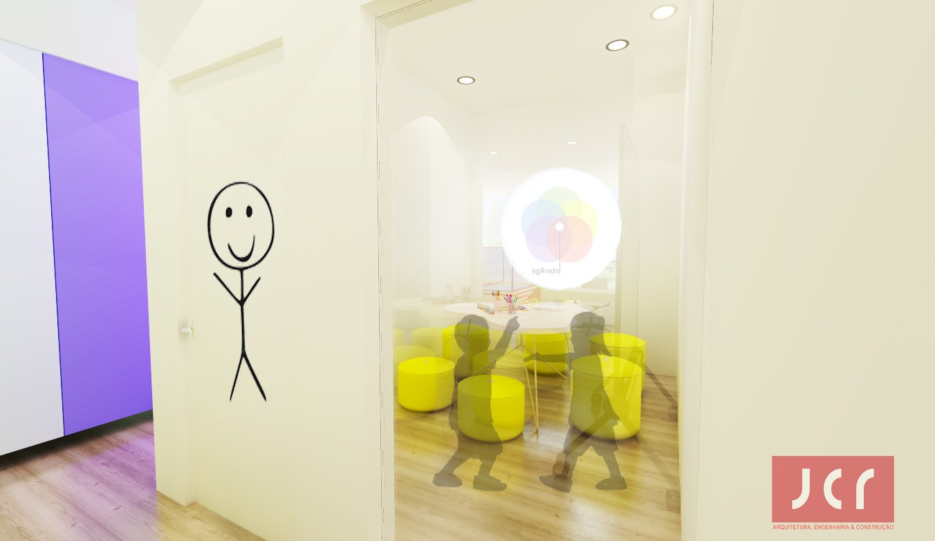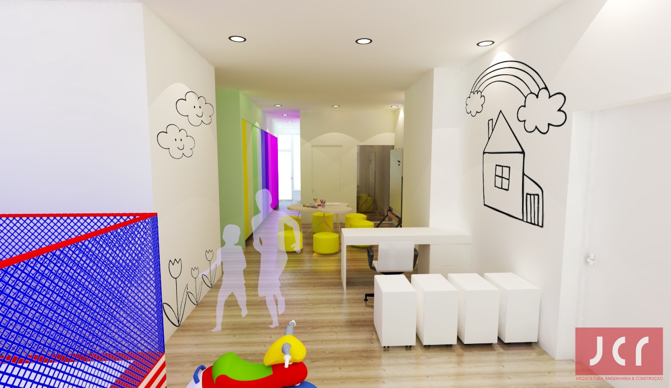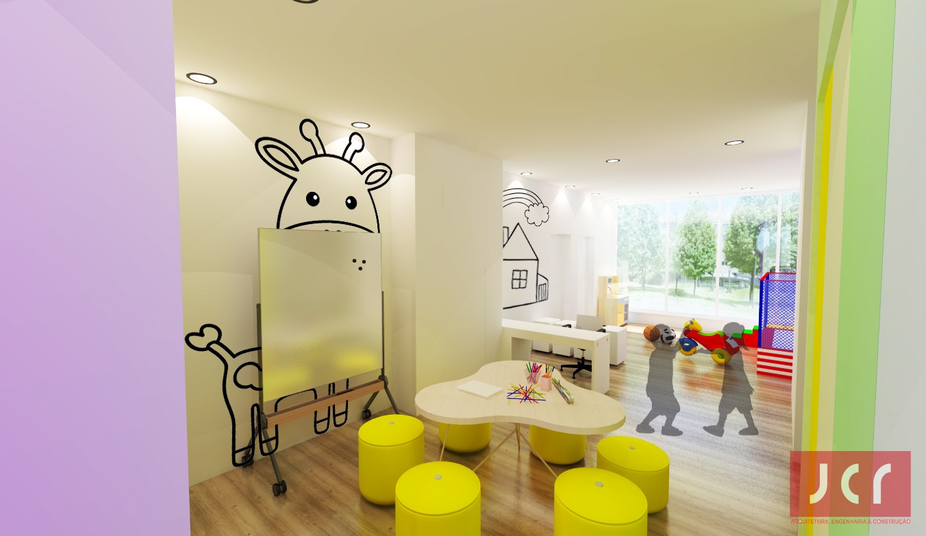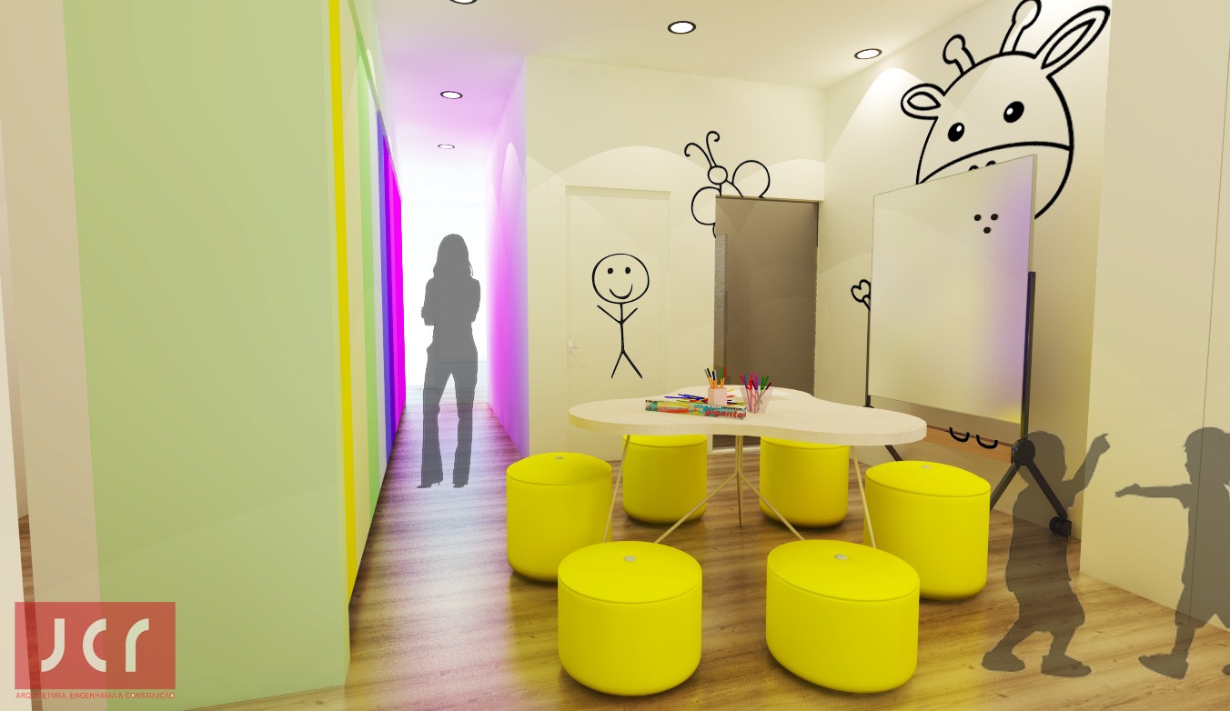 O projeto visa a remodelação de um espaço de apoio à educação infantil, com a introdução de um ambiente animado e colorido.